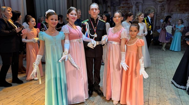 В роскошно украшенном зале, среди мерцающих свечей и пестрых цветов, среди вихря пышных платьев и строгих мундиров, гармонично сливавшихся в единое полотно красоты и элегантности, словно пары из сказки, собрались во Дворце Культуры кадеты и их прекрасные дамы на ежегодном Большом Кадетском Балу.