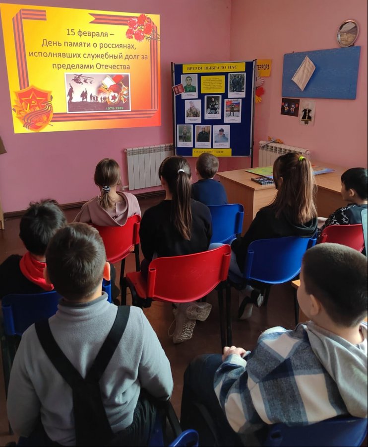 15 февраля – День памяти о россиянах, исполнявших служебный долг за пределами Отечества. 35 лет прошло с того времени, как 15 февраля 1989 года последние советские войска покинули Афганистан. Много советских солдат отдали свои жизни, выполняяпоставленные задачи руководством страны. Память о далекой Афганской войне жива, и стереть события той войны не смогут ни годы, ни расстояния. К этой памятной дате в Доме культуры села Омолон 15 февраля состоялся урок мужества «Чтобы помнили», который сопровождался показом презентации о воинах-интернационалистах из разных уголков нашей большой страны. В ходе мероприятия ребята узнали о причине ввода советских войск в Афганистан, о мужестве и отваге наших воинов, о трудных условиях, в которых приходилось воевать нашим солдатам. Эта война навсегда останется в памяти, напоминая о ее трагизме и мужестве советских солдат.