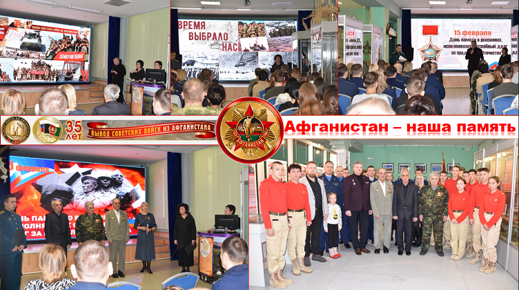 Пусть в памяти живёт веками Тот подвиг молодых ребят, Что жизни отдавали и здоровье, Пройдя сквозь шквал больших преград. 15 февраля, в юбилейную дату, 35- летие вывода советских войск из Афганистана, в Билибинском краеведческом музее имени Г. С. Глазырина прошло традиционное памятное мероприятие, посвящённое россиянам, исполнявшим свой служебный долг за пределами Отечества. На мероприятие были приглашены гости: воины – интернационалисты, наши земляки, Хорохорин Г. М., Шароди Ф. И., Недоступ В. Н., Шеховцев А. В., военнослужащие войсковых частей города 3537 и 46179Б, представители администрации города, юнармейцы, студенты Чукотского северо – западного техникума города Билибино и старшеклассники общеобразовательной школы. Ведущие мероприятия рассказали о военных событиях 1979 – 1989 годов и подвигах воинов – интернационалистов, которые проходили срочную службу в Демократической Республике Афганистан, о Специальной военной операции на Донбассе и политических событиях, которые происходят в настоящее время. С торжественным словом к гостям мероприятия обратились исполняющий обязанности начальника социальной политики Билибинского района Я. С. Луценко и представитель Совета Чукотского окружного отделения Всероссийской общественной организации ветеранов «Боевое братство», руководитель военно – патриотического клуба «Отвага» - А. В. Шеховцев. Все присутствующие минутой молчания почтили память воинов – интернационалистов, исполнявших свой служебный долг за пределами Отечества, и героев Z, не вернувшихся со Специальной военной операции. Гости мероприятия были приглашены на выставку, посвящённую Дню памяти о россиянах, исполнявших служебный долг за пределами Отечества и Дню защитника Отечества, где, по традиции, все сфотографировались на память.