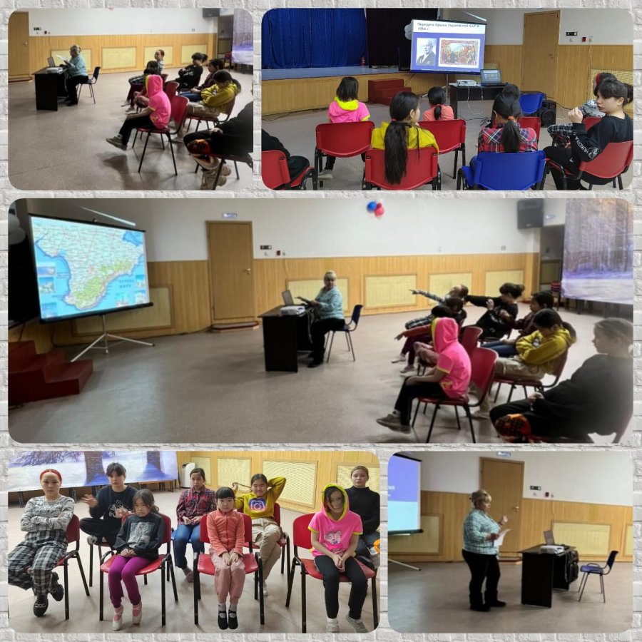 Ведущая познакомила участников мероприятия с историей, географическим расположением и основными достопримечательностями Крымского полуострова. Были рассмотрены особенности исторического и культурного единства республики Крым и города Севастополя с Россией.