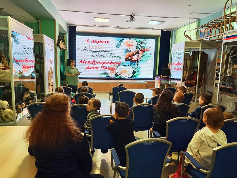 2 апреля в Билибинском краеведческом музее имени Г. С. Глазырина прошло лекционное мероприятие «Международный день птиц» для детей старшей группы детского сада «Алёнушка». О приходе весны нам часто напоминают не только календарь или погода за окном, а радостный щебет птиц. В какой-то момент во время прогулки мы слышим их трели и понимаем - мир, наконец-то, просыпается после зимней спячки. Научные сотрудники музея показали презентацию и рассказали детям о птицах нашего района, о тех, кто прилетает сюда за тысячи километров, чтобы вывести потомство, познакомили детей с нашей чукотской Красной книгой и занесёнными в неё редкими видами пернатых. Дошкольники, отвечая на вопросы, сделали выводы о том, что обязательно нужно стремиться к бережному отношению к природе, активно участвовать в её сохранении. В зале «Природы» прошла экскурсия, познакомившая ребят с птицами Чукотки и нашего района.