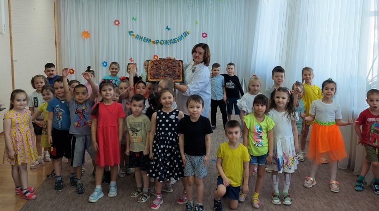 День рождения детского сада отмечали праздничным досугом. В музыкальном зале воспитанники старшей и подготовительной групп рассказывали стихи, пели песни и водили хоровод. Повара в этот день побаловали детей вкусным сладким пирогом.