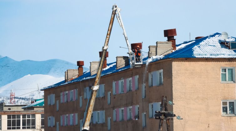 В зимнее время на крышах зданий скапливается большое количество снега и наледи, а также образуются сосульки, которые достигают значительных размеров.