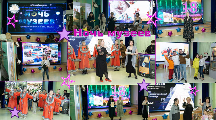 «Ночь музеев» – международная акция, основная цель – показать возможности и потенциал современных музеев, а также привлечь молодёжь. Каждый год у любого человека есть возможность приобщиться к истории и культуре. 18 мая в Билибинском краеведческом музее имени Г.С. Глазырина состоялась ежегодная Всероссийская акция «Ночь музеев. Тема мероприятия в этом году – «Из поколения в поколение. Семейные реликвии», поскольку 2024 год объявлен Годом семьи. Загадочный голос времени поприветствовал гостей и поведал невероятную и волшебную музейную тайну об экспонатах и рассказал о том что, когда приходит полночь, в стенах музея иногда случаются невероятные чудеса. Наши ожившие манекены рассказали зрителям о чаате, которым ловят оленей, как оленеводы его собирают, где превосходящей чертой чукотских оленеводов является спокойствие и терпение в процессе обучения. Гостям поведали историю танца северных народов, чтобы помнили, хранили память и брали пример у наших предков. Танец – рассказ жизни человека, подражание животным и птицам. Провели флешмоб «Капуста», в котором присутствующие проявили свои способности к танцу. Ансамбль «Тиркытир» своими красивыми и весёлыми танцами поднимали всем настроение. Праздничный вечер продолжила Ирина Рыбакова, которая представила вниманию жителей и гостей города фотовыставку Русского географического общества «Весна. Пробуждение». Активно приняли участие дети, подготовив для музея поздравительную открытку ко Дню музеев. Разыграли приз «Клад Белого шамана», обладателем стал Слепцов Давид. В официальной части мероприятия слово было предоставлено Луценко Я.С. – и.о.начальника Управления социальной политики, начальнику отдела образования, которая в честь празднования Международного дня музеев вручила «Почётные грамоты» работникам музея за многолетний и добросовестный труд, преданность избранному делу, большой вклад в развитие культуры Билибинского района». Директор музея Иваницкая М.О. поблагодарила всех, кто принимал участие в наших музейных мероприятиях и сотрудничал с нами. Также нас поздравили Лунина Лариса и Лобанова Надежда, подготовив трогательное видео о нашем музее, прозвучало стихотворение в исполнении автора Луниной Л. «По залам вечности». Продолжилась праздничная программа с конкурсами и викторинами на тему семьи. Семья – самое главное в жизни для каждого из нас. Для желающих проведены экскурсии, представлена национальная одежда для фотосессии, праздничная фотозона «Ночь музеев». На высокой ноте завершился праздник - Гимном семье, который специально был написан к провозглашённому Президентом России - Году семьи. Ночь в музее прошла в тёплой, душевной атмосфере, никого не оставила равнодушным. Все получили массу положительных эмоций, забыв о проблемах, отдохнув душой. Никто не остался без дела, занятия нашлись как для самых юных участников акции, так и для взрослых.