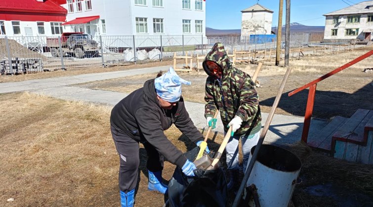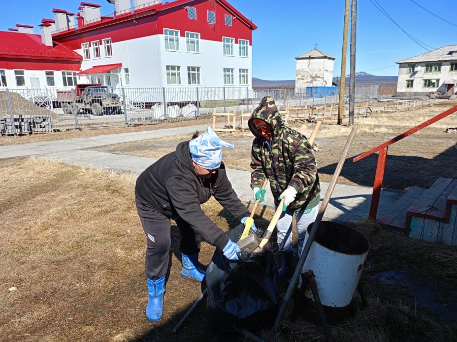 Работа проведена масштабная: убрана вся территория от мусора, скопившегося за время долгой чукотской зимы, и большого количества сухой травы.