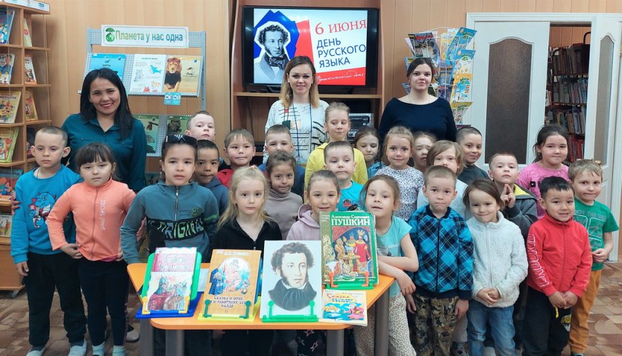 В день рождения поэта Александра Сергеевича Пушкина воспитанники старшей группы детского сада «Алёнушка» были приглашены в библиотеку. Ребятам показали интересную презентацию о детстве Александра Сергеевича, провели викторину по сказкам, почитали отрывок из сказки «Золотой петушок».