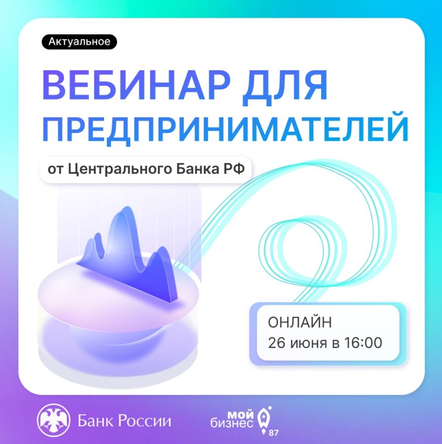 Центральный банк России проведет вебинар для субъектов МСП: «Платформа Банка России «Знай своего клиента (ЗСК)» Участники вебинара узнают: о сервисе, с помощью которого банки получают от Банка России информацию о проведении подозрительных операций их клиентами. как влияет информация платформы ЗСК на окончательную оценку банками добросовестности бизнеса клиентов какие ограничительные меры могут применяться банками могут ли предприниматели обжаловать решение банка о применении ограничительных мер Спикер вебинара: Галина Бронова, ведущий экономист Центра финансового мониторинга и валютного контроля (г. Владивосток) Для участия в мероприятии подключитесь по прямой ссылке (https://iva.cbr.ru/#join:t8da11df0-7e5b-45f1-968f-afea81b1bc20) заполните в поле «Имя» и введите пароль: 2606 Вебинар состоится 26 июня в 16:00 (время Чукотское) Работа в этом направлении ведется в рамках реализации мероприятий Национального проекта "Малое и среднее предпринимательство и поддержка индивидуальной предпринимательской инициативы".