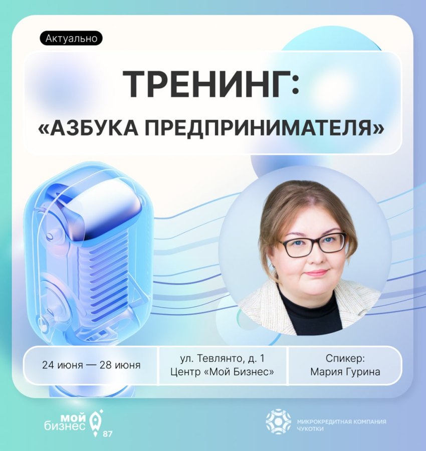 АНО «МКК Чукотки» и НО «Фонд развития Чукотки» приглашают принять участие в тренинге «Азбука предпринимателя» в рамках программ обучения АО «Корпорация «МСП» для потенциальных и начинающих предпринимателей по обучению навыкам создания бизнеса «с нуля». В рамках тренинга будет представлена пошаговая инструкция создания бизнеса от идеи до регистрации предприятия. Особенностью программы тренинга «Азбука предпринимателя» является получение слушателями практических инструментов для создания бизнеса. В процессе тренинга Вы получите навыки и знания: по оценке своей бизнес-идеи по разработке бизнес-плана определению формы бизнеса процедуре регистрации бизнеса об источниках финансирования и мерах финансовой поддержки налоговом режиме «Налог на профессиональных доход» (самозанятые) существующих мерах поддержки субъектов МСП По итогам прохождения тренинга выдается сертификат (подходит для получения гранта для молодых предпринимателей и социальных предприятий). Участие бесплатно.