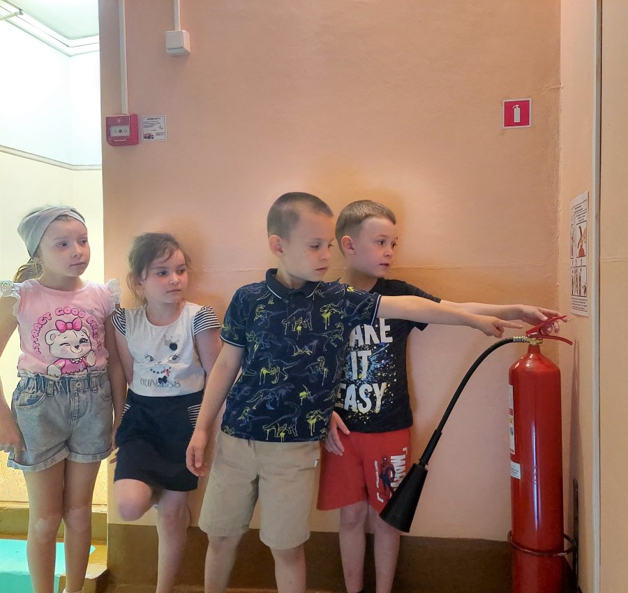 Детский сад «Алёнушка» активно включился в проведение акции. 15 июля для детей старшей и подготовительной группы была устроена экскурсия по детскому саду, с целью ознакомления со стендами и средствами безопасности. Ребята уже знают, что такое огнетушитель. Они рассмотрели инструкцию к его использованию, нашли тревожные кнопки для оповещения пожарных о чрезвычайной ситуации и с интересом рассмотрели стенд по пожарной безопасности, где каждый выбрал для рассказа сюжетную картинку, по которой рассказал товарищам об изображённой причине возникновения пожара.