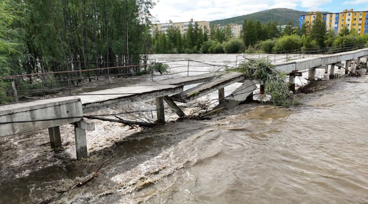 В Билибино из-за стихии (выпадение обильных осадков, повышение уровня воды) произошло частичное обрушение конструкции пешеходного моста (ведущего в сторону профилактория) и опоры связи. В настоящее время проход по пешеходному мосту запрещен.