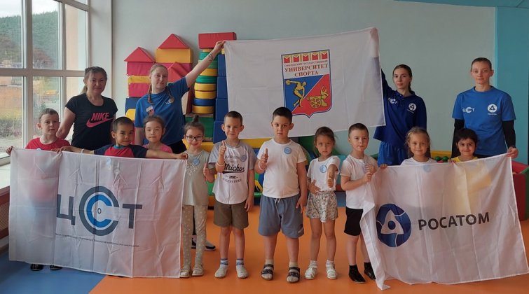 26 июля к воспитанникам старшего дошкольного возраста детского сада «Аленушка» пришли гости – студентки и преподаватель Смоленского государственного университета спорта. Девушки подготовили для ребят спортивную программу «Весёлые старты». Для разминки дети выполнили «весёлую зарядку» под музыку. Затем разбившись на 2 команды «Белый медведь» и «Светофор» дошколята начали старты. Первой была эстафета на скорость и координацию движений «бег змейкой», затем на выносливость – прыжки на одной ноге. С большим азартом ребята болели за своих товарищей! Побеждала, то одна, то другая команда! Но в итоге победила дружба. А в конце мероприятия организаторы наградили участников памятными значками и браслетами. Серия физкультурных мероприятий инициирована Госкорпорацией Росатом, и мы ждём гостей из Смоленска для продолжения спортивных встреч.