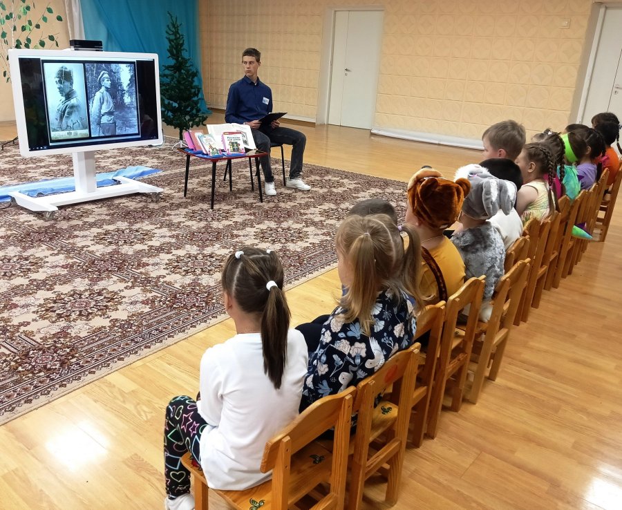 Беседу с детьми проводил волонтер Михаил, бывший воспитанник детского сада. Он познакомил дошколят с жизнью и творчеством писателя Михаила Зощенко. После небольшого экскурса в прошлое известного литератора, Михаил зачитал короткие рассказы писателя, которые были посвящены «умным» животным. Ребята с большим вниманием слушали произведения, а потом активно отвечали на вопросы гостя, подтверждая вои ответы фактами из прочитанной книги или из собственного опыта.