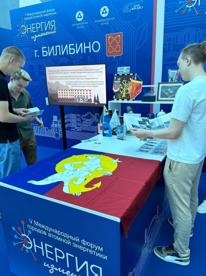 Стенд достижений города присутствия Билибинской АЭС украсили творческие работы участников кружка «Мир творчества» Дворца культуры, а в презентационном материале отражено творчество народного самодеятельного национального ансамбля «Тиркытир». Билибинская АЭС является социальным партнером Дворца культуры, и во многом, благодаря участию концерна «Росэнергоатом», ДК развивается.