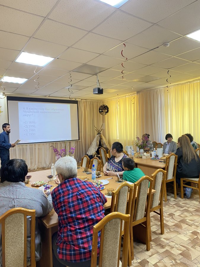 Возможно ли, встретиться у чукотской яранги в библиотеке?! Конечно, возможно! В этом убедились гости билибинской Центральной библиотеки, принявшие участие 8 августа в интеллектуально-развлекательной викторине, приуроченной к Международному дню коренных народов мира. Тематикой викторины, иначе «квиза», стала дорогая сердцу Чукотка. Игра, состоявшая из шести раундов с разным количеством вопросов в каждом, позволила игрокам вспомнить множество фактов по темам из категорий государство, языкознание, литературоведение, история и география. Обсуждения в командах были порой очень бурные, но большая часть вопросов была «взята», и лишь минимальный разрыв по баллам определил команду-победительницу. А чтобы соревноваться было уютней и вкуснее, для наших интеллектуальных борцов были приготовлены чайные паузы с ароматным горячим напитком, сладостями и ягодными дарами чукотской земли. Особенно дорогой подарок для всех преподнес юный гость – Виктор Тиркин. Виктор прочитал на двух языках стихотворение эскимосского поэта Юрия Анко «Мы люди холода», тем самым дал старт игре, а в завершении встречи прозвучали строки, посвященные ребятам, на чьих плечах лежит миссия по защите нашей Родины и нас. В праздничные дни жителей и гостей Билибинского района ждет еще много интересных встреч и подарков. В их числе и книжная выставка-просмотр «Дочь чукотской тундры» на главной площади города Билибино. 9 августа книги краеведческого фонда выйдут за рамки библиотеки, чтобы принять участие в общегородском праздновании Международного дня коренных народов мира и рассказать вам о ярчайших представительницах чукотской земли. Самобытные писательницы и поэтессы, сильные женщины, стоявшие во главе округа – история, творившая будущее. Гости билибинской библиотеки уже успели окунуться в будоражащую атмосферу праздника и зарядиться положительными эмоциями от живого общения в кругу друзей. И мы желаем этого каждому!