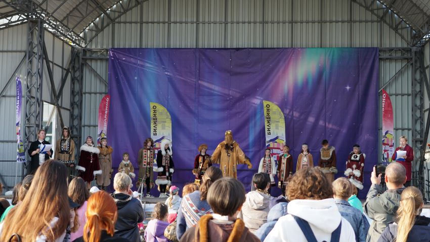 9 августа в рамках празднования Дня коренных народов мира сотрудники Билибинского краеведческого музея им. Г.С. Глазырина на центральной площади города представили дефиле «Радуга на снегу» из национальных костюмов народностей, населяющих Билибинский район.