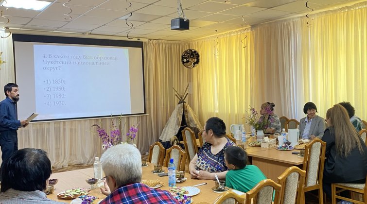 Возможно ли, встретиться у чукотской яранги в библиотеке?! Конечно, возможно! В этом убедились гости билибинской Центральной библиотеки, принявшие участие 8 августа в интеллектуально-развлекательной викторине, приуроченной к Международному дню коренных народов мира. Тематикой викторины, иначе «квиза», стала дорогая сердцу Чукотка. Игра, состоявшая из шести раундов с разным количеством вопросов в каждом, позволила игрокам вспомнить множество фактов по темам из категорий государство, языкознание, литературоведение, история и география. Обсуждения в командах были порой очень бурные, но большая часть вопросов была «взята», и лишь минимальный разрыв по баллам определил команду-победительницу. А чтобы соревноваться было уютней и вкуснее, для наших интеллектуальных борцов были приготовлены чайные паузы с ароматным горячим напитком, сладостями и ягодными дарами чукотской земли. Особенно дорогой подарок для всех преподнес юный гость – Виктор Тиркин. Виктор прочитал на двух языках стихотворение эскимосского поэта Юрия Анко «Мы люди холода», тем самым дал старт игре, а в завершении встречи прозвучали строки, посвященные ребятам, на чьих плечах лежит миссия по защите нашей Родины и нас. В праздничные дни жителей и гостей Билибинского района ждет еще много интересных встреч и подарков. В их числе и книжная выставка-просмотр «Дочь чукотской тундры» на главной площади города Билибино. 9 августа книги краеведческого фонда выйдут за рамки библиотеки, чтобы принять участие в общегородском праздновании Международного дня коренных народов мира и рассказать вам о ярчайших представительницах чукотской земли. Самобытные писательницы и поэтессы, сильные женщины, стоявшие во главе округа – история, творившая будущее. Гости билибинской библиотеки уже успели окунуться в будоражащую атмосферу праздника и зарядиться положительными эмоциями от живого общения в кругу друзей. И мы желаем этого каждому!