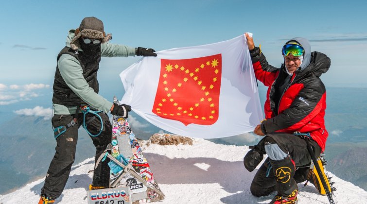 Наш земляк Дягилев Евгений Сергеевич покорил вершину Эльбруса и развернул полотно с гербом нашего района.