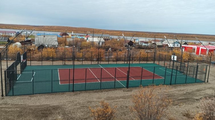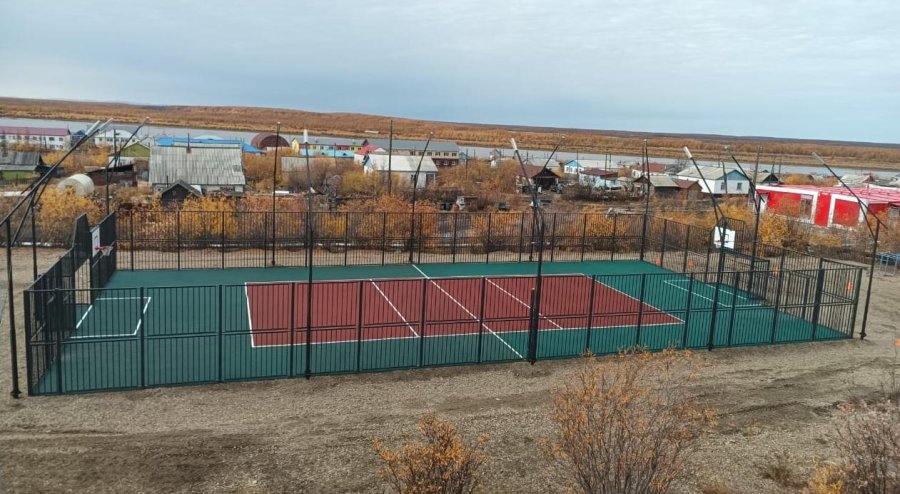Анюйск. Построили новую универсальную спортивную площадку. Любители спорта смогут играть как в футбол, так и в баскетбол. Также построили новую территорию для детишек: установили элементы детской площадки, лавочки, урны, освещение и ограждение. На обеих площадках покрытие выполнено из резиновой крошки.