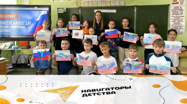 В МАОУ «СОШ г. Билибино ЧАО» в рамках проекта «Навигаторы детства» обучающиеся 4 "В" класса вместе с советником директора, приняли участие в мастер-классе под названием «С возвращением домой!»🏠🇷🇺, приуроченный ко Дню воссоединения Донецкой Народной Республики, Луганской Народной Республики, Запорожской области и Херсонской области с Российской Федерацией.🇷🇺