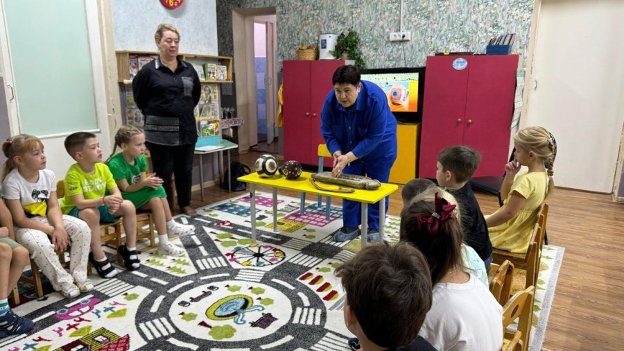 15 ноября научные сотрудники Билибинского краеведческого музея посетили детский сад «Сказка». Мероприятие для воспитанников подготовительных групп «Символ солнца и огня» было посвящено культуре и быту народов Севера. Гости принесли раритеты: эскимосские мячи и прибор для добывания огня – гыргытти. Ребята узнали, как добывался огонь в древности, что «женщина - хранительница очага» не просто поговорка, а образ жизни тундровиков. С древних времён эскимосский мяч, символизирующий солнце, обозначающий небесную сферу, является образом Вселенной у коренных народов Чукотки. Старое эскимосское предание гласит, что человеческую мудрость передаёт женщина своей внучке, когда шьёт этот мяч. Изначальная роль эскимосского мяча – быть атрибутом на праздниках, посвященных ежегодному обновлению природы. Много нового и интересного узнали дошколята на мероприятии: рассмотрели узоры на мячах, попробовали «добыть» огонь и получили задание самим придумать узор на раскрасках – эскимосский мяч. Знакомство с культурой и бытом народов Чукотки – неотъемлемая часть в работе научного отдела краеведческого музея.