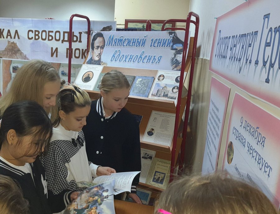 Накануне Дня героев Отечества в МАОУ «СОШ г. Билибино» в школьной библиотеке была оформлена книжная выставка «Россия чествует героев!». Библиотекарь всех желающих знакомит с историей возникновения и празднования знаковой даты. Художественная литература, представленная на выставке, рассказывает о славных подвигах, сражениях, о судьбах легендарных героев-полководцев и солдат разных времён и эпох, с честью защищавших нашу страну. Выставочная композиция знакомит читателей с героическим прошлым России, со знаменитыми военачальниками, людьми, совершившими подвиг во имя своей Родины. На выставке представлены книги, повествующие о легендарных полководцах Дмитрии Донском и Михаиле Кутузове, о бесстрашных адмиралах Императорского русского флота - Фёдоре Ушакове и Павле Нахимове. О человеке, с именем которого связано представление о героическом духе русской армии и великих победах русского оружия - Александре Суворове. Здесь же читатели смогут увидеть издания из серии «Легендарные герои» М. Галлай, Б. Зотова, Ю. Дмитриева и произведение А. Ляпидевского об участниках операции по спасению арктической экспедиции на пароходе «Челюскин» - героев-лётчиков первых в истории страны, удостоенных звания Героев Советского Союза. Героями не рождаются, героями становятся в час испытаний. О подвигах — стихи слагают, о славе – песни создают. Герои не умирают, Герои в нашей памяти живут.