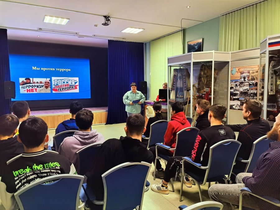17 декабря в Билибинском краеведческом музее прошло лекционное мероприятие «Мир без тревоги и слёз». Научные сотрудники музея подготовили презентацию и лекцию, рассказывающие о том, что такое международный терроризм. После показа документального фильма «Терроризм – угроза обществу» состоялась беседа, подросткам напомнили о том, что в повседневной жизни надо быть бдительными, а также, как вести себя в экстренных ситуациях.