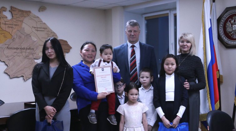 15 января 2025 года в торжественной обстановке Главой Билибинского муниципального района Сафоновым Е.З. проведено вручение Благодарственного письма Губернатора Чукотского автономного округа и подарков замещающему родителю Ходьяло Алёне Дмитриевне, которая добросовестно и ответственно исполняет свои родительские обязанности, отличается деятельным неравнодушием к детям, оказавшимся в сложной жизненной ситуации. Алёна Дмитриевна воспитывает шестерых детей, является положительным примером замещающей семьи для многих родителей в Чукотском автономном округе.