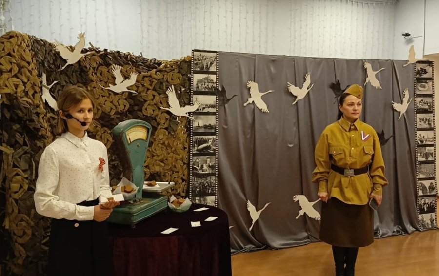 Открыл мероприятие видеоролик-посвящение ленинградцам. Далее стартовала информационная часть, в ходе которой ведущие концерта напомнили присутствующим о страшной странице истории города-героя. Всё действо сопровождалось информационно-насыщенными просветительскими роликами, которые раскрывали интересные факты о жизни блокадного города. Выступления вокалистов и чтецов Дворца культуры способствовали полному погружению в атмосферу мероприятия, гостями которого стали студенты и волонтеры Чукотского северо-западного техникума, добровольческий отряд «Доброе сердце Данко, курсанты ВПК «Отвага», КМБ «Вымпел», участники РАДМ «Движение первых» Центра дополнительного образования. Трогательным и искренним получилось коллективное послание солдатам-участникам СВО, написанное в рамках акции «Чукотка пишет письмо солдату». Гости мероприятия желали бойцам здоровья, чтобы их семьи не знали потерь, чтобы каждый вернулся домой целым и невредимым. Юные участники мероприятия попросили записать, что очень гордятся и верят в Победу. Завершением концерта стала традиционная акция «Блокадный хлеб», которая началась с инсценировки «Вы знаете, как есть блокадный хлеб?». Далее было рассказано и продемонстрировано чем питались жители блокадного города: опилки, сушенная трава, кора, сахар с землей, мука с обойной пылью, клей. Присутствующие настолько прониклись, что взяли по кусочку хлеба. А самые любознательные остались, чтобы познакомиться с историей фотографией размещенных на специально созданной для мероприятия инсталляции.