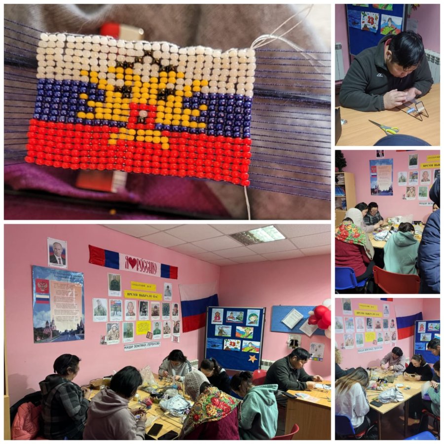 Активисты с. Омолон собрались в Доме культуры на мастер-класс по изготовлению шевронов из кожи и бисера. Шевроны предназначены для военнослужащих СВО. Дети и взрослые  проявили фантазию, создавая свои уникальные шедевры. Получив поделки, бойцы смогут прикрепить их на форму в качестве шеврона. Каждый участник СВО сможет носить талисман-шеврон и помнить, что люди всей страны им гордятся и верят в него.