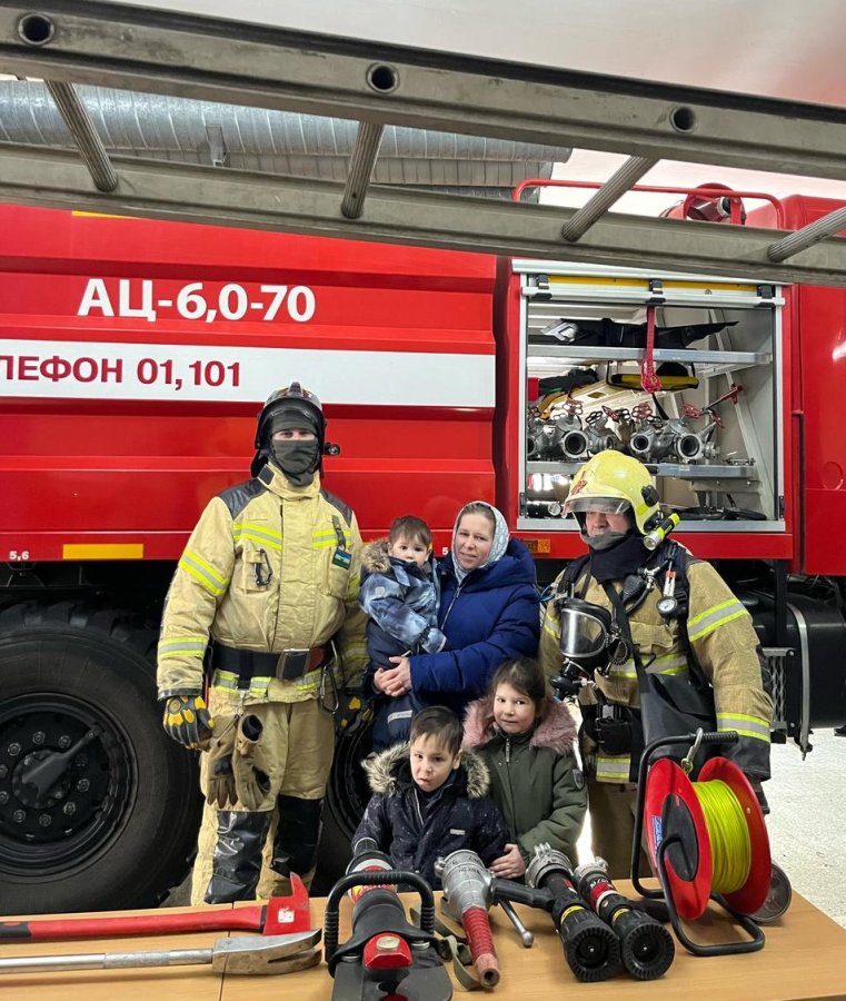 25 марта воспитанники семейной группы – структурного подразделения детского сада «Алёнушка» в сопровождении воспитателя отправились на экскурсию в находящуюся поблизости с домом пожарную часть. Дети видели выходящие из гаражей части пожарные машины, пожарных и очень хотели узнать, что же это такое - пожарная часть. И вот была организована экскурсия. Детей радушно встретили начальник караула и пожарные, одетые в экипировку. Во время экскурсии дети познакомились с работой пожарных, техникой, одеждой, оборудованием, которые применяют во время тушения пожаров, посидели в машине, как настоящие пожарные и получили массу положительных эмоций и впечатлений.