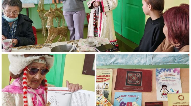 Так же Екатерина Михайловна представила выставку книг Курилова Н. Н., Куриловых Гаврила Николаевича и Алора Адо на юкагирском языке тундрового диалекта. Рассказала об известных юкагирах, а так же о том, как во время войны с большим перегоном юкагиры и колымские чукчи пришли на наши территории.