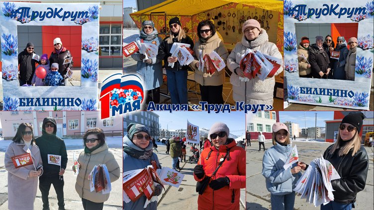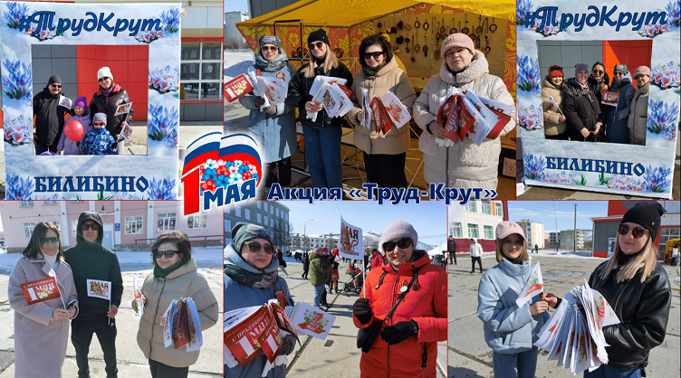 День весны и Труда - один из наиболее важных праздников в мире. Торжество 1 Мая имеет глубокие исторические корни.  В рамках празднования Дня Весны и Труда, который символизирует солидарность и дружбу, считается символом весны, который олицетворяет собой уважение к любому созидательному труду, 1 мая Билибинский краеведческий музей провёл акцию «Труд-Крут». В рамках реализации акции, для жителей и гостей города была подготовлена фотозона, хэштег которой предлагает волонтёрам, общественным организациям и всем неравнодушным гражданам принять участие в организации мероприятий, посвящённых данному празднику и где можно было сделать на память семейное фото. Также волонтёры музея раздавали жителям и гостям города флажки с символикой праздника.