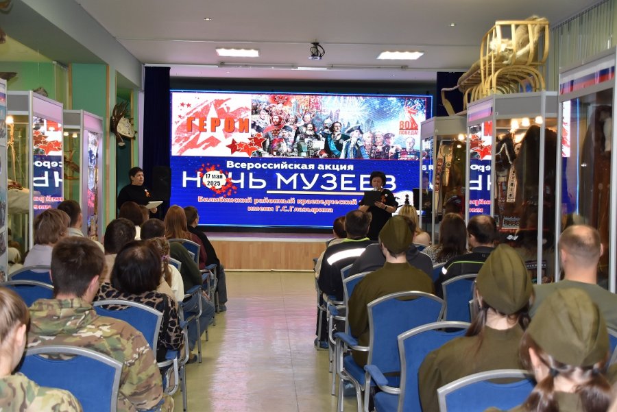 Герои Родины – как много в этом смысла! И честь, и храбрость в этих двух словах. Героями нельзя стать слишком быстро, Герой лишь тот, кому не ведом страх. 17 мая в Билибинском краеведческом музее имени Г.С.Глазырина прошла ежегодная Всероссийская акция «Ночь музеев-2025». Раз в году в России проходит это масштабное и интересное событие, приуроченное к Международному дню музеев. Тема мероприятия «Герои», поскольку 2025 год объявлен Годом Защитника Отечества и наша страна отметила юбилейную дату - 80-летие Великой Победы. Этот год стал символом национального единства и патриотизма, данью уважения к ратному подвигу всех, кто сражался за Родину в разные исторические эпохи, кто защищал и продолжает защищать суверенитет и безопасность нашей страны. Тема «Герои» имеет важное значение для сохранения исторической памяти и укрепления духовно-нравственных ценностей, формирования чувства гордости за свою страну и её достижения. В открытии «Ночи музеев-2025 приняли участие воспитанники Центра дополнительного образования со стихотворением К.Симонова «Если дорог тебе твой дом…» и студенты Северо-западного техникума города с песней «Огонь на себя». В исполнении Девина Максима прозвучала песня «Тёмная ночь». Мы вспомнили о героях былых времён: богатырей Руси Великой, героев эпохи Петра I и Екатерины II, героев Отечественной войны 1812 года, героев Гражданской войны, Великой Отечественной войны, которые самоотверженно сражались за свободу и независимость страны. Вспомнили своих чукотских героев Великой Отечественной войны и Специальной военной операции. Почтили память всех, кто не вернулся с войны и стали примером мужества, чести и достоинства в борьбе с фашизмом. Сотрудники музея провели викторину «О том, что было, не забудем!» о памятных страницах истории Великой Отечественной войны. Познакомили с экспозицией музея «Великая поступь Победы, посвящённой Дню Победы – 9 мая. В ночь музеев была открыта выставка Росатома «Невидимый фронт» о событиях 1941-1945 годов, как начинался атомный проект СССР, приуроченной к 80-летию Великой Победы. В кинозале музея прошёл показ художественного фильма «Солдатик» о волнующих и героических событиях, произошедших в жизни самого маленького солдата - героя Великой Отечественной войны, шестилетнего Серёжи Алешкова, который потерял всех своих родных и попал в действующую армию. Драма о реальной истории самого юного сына полка. Славная история у нашей Родины, много разных подвигов посвятили ей. И под мирным небом, и в боях войны отвагу проявляют наши Герои – защитники страны, а мы гордимся ими!