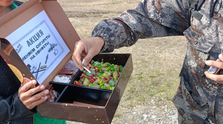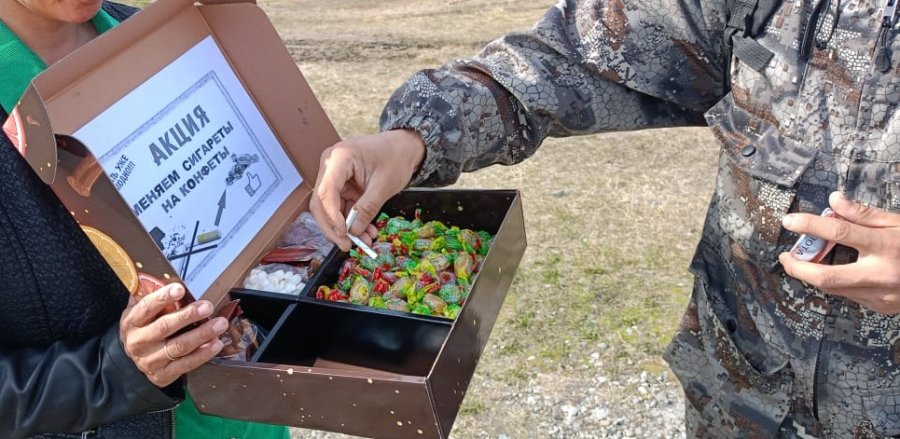 Сотрудники дома культуры, в рамках Всемирного дня без табака, выйдя на улицу, предлагали прохожим конфеты вместо сигарет и раздавали информационные буклеты о вреде курения. Рассказывали всем, какой вред наносит курение здоровью человека, и призывали курильщиков хотя бы на один день воздержаться от пагубной привычки, а тех, кто не курит, никогда не брать в руки сигарету. Курящим предлагалось поменять сигареты на конфеты, и они довольно активно ломали сигареты. Некоторые только узнали, что курение вредит не только самому курильщику, но и тем, кто находится рядом, - так называемым «пассивным курильщикам». Надеемся, что наша акция «Меняем сигареты на конфеты» помогла кому-нибудь бросить эту пагубную привычку.