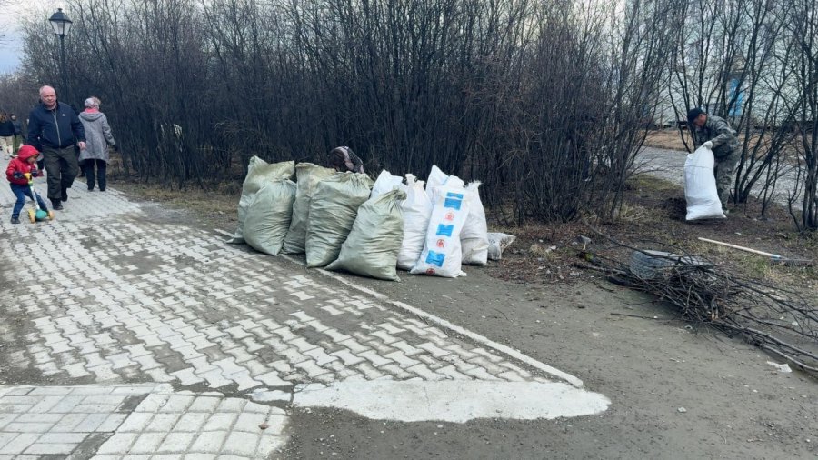 Сегодня работники городских предприятий Билибино провели субботник. Пасмурная погода и ветер не стали препятствием — все активно включились в уборку территорий.
