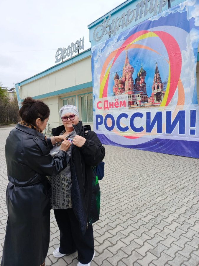В День России перед началом праздничного концерта, посвященного этому главному государственному празднику, сотрудники Дворца культуры г. Билибино организовали патриотические акции.