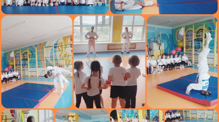 Дети с удовольствием выполнили лёгкую пробежку и упражнения на разогрев и растяжку всех групп мышц. Затем спортсмены выступили с показательными упражнениями по своим видам спорта: дзюдо и бокс, а ребята с удовольствием послушали о тренировках и соревнованиях.