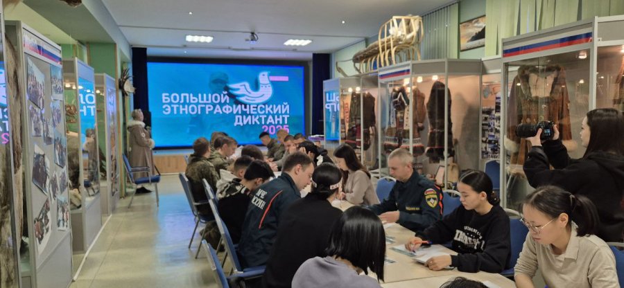 Участниками этнодиктанта в Билибинском музее стали представители культурных учреждений города, студенты Северо – западного техникума, военнослужащие воинской части, участники АКМНС. Перед гостями музея выступили воспитанники детского фольклорного ансамбля «ИРЭТ» городского Дворца культуры. Впервые в заданиях диктанта были видеовопросы от участников специальной военной операции.