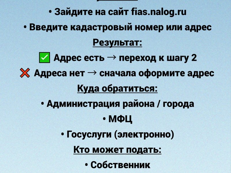 Департамент финансов и имущественных отношений Чукотского  автономного округа (далее — Департамент) в целях исполнения Поручений Губернатора Чукотского автономного округа по итогам заседания Совета по  улучшению инвестиционного климата Чукотского автономного округа от  21.08.2025 (от 29.09.2025 № ВК-П21-6576), а также достижения ключевых  показателей эффективности Национальной модели целевых условий ведения  бизнеса, утвержденных Распоряжением Губернатора Чукотского автономного  округа от 26.12.2025 № 416-рг, публикует пошаговые инструкции  и конструктор документов, необходимых при получении государственных  услуг по регистрации прав собственности и постановке на кадастровый учет  объектов недвижимости.